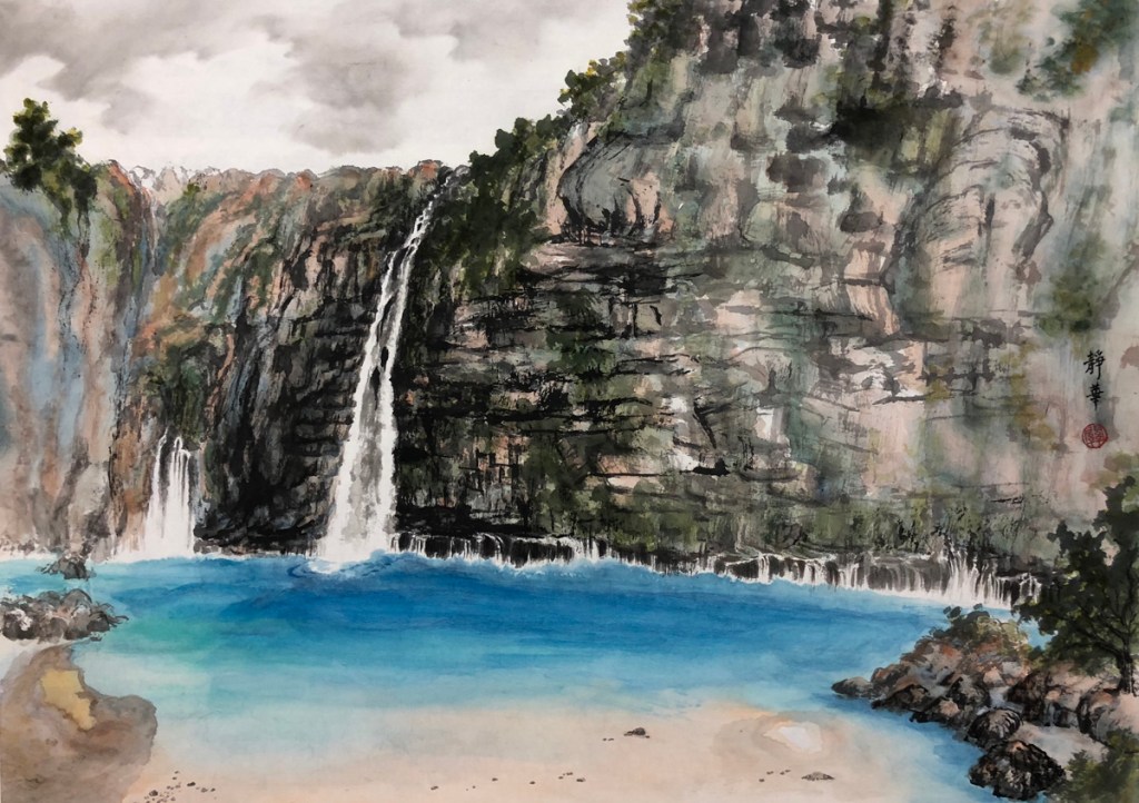 所以自己畫山水的題材,很多都是紀錄曾經遊過的山、玩過的水。亦嘗試用不同的表達方式,索性在畫紙上繼續遊山玩水。